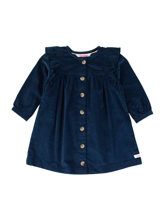 Girls Dark Navy Stretch Corduroy Ruffle Detail Dress