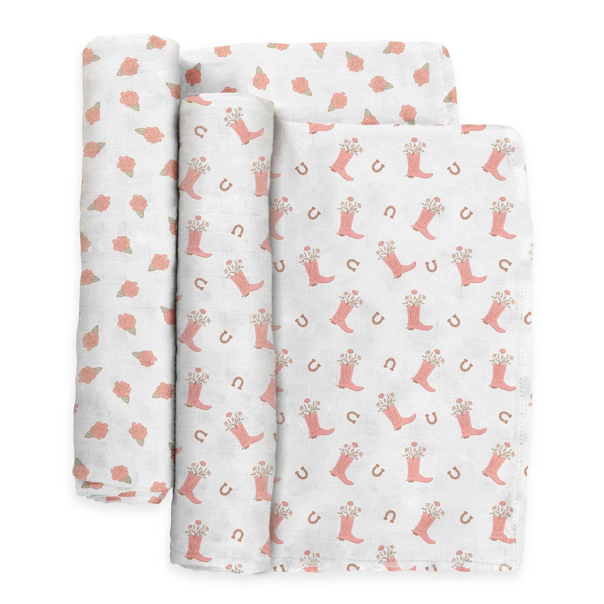 The Swaddle Blanket Set from JuJuBe × Studio Oh! includes two blankets, each with an irresistible, on-trend design. While perfect for swaddling newborns, these blankets can also be used for tummy time, as lightweight stroller covers, and as nursing throws. Each measures 44 by 44 inches (112 cm × 112 cm) and is made of sustainable, non-GMO bamboo fabric that is gentle and soft on Baby’s skin. Designed with sweet artwork in nursery-friendly colors, these blankets come packaged in a giftable box, making them a perfect surprise for new parents and moms-to-be. Two swaddle blankets measuring 44"W × 44"L (112 cm × 112 cm) each 100% viscose from bamboo; produced using non-GMO, sustainable plants Machine washable